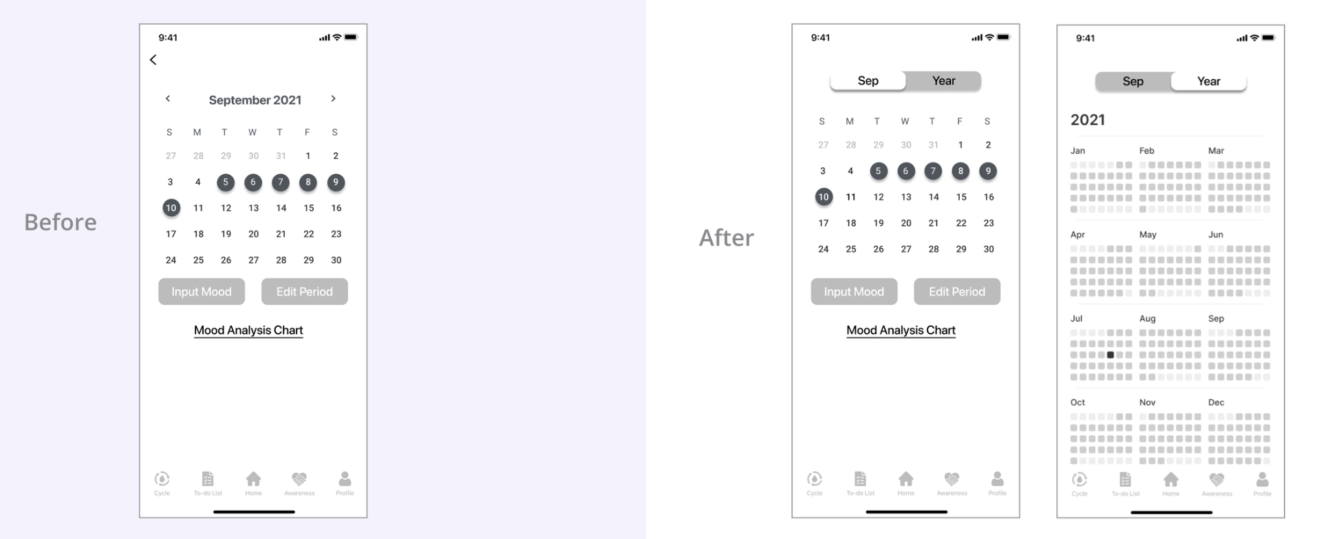 We chose purple as the primary colour, representing wisdom, calm, and emotional balance, while evoking a sense of self-care and empowerment.