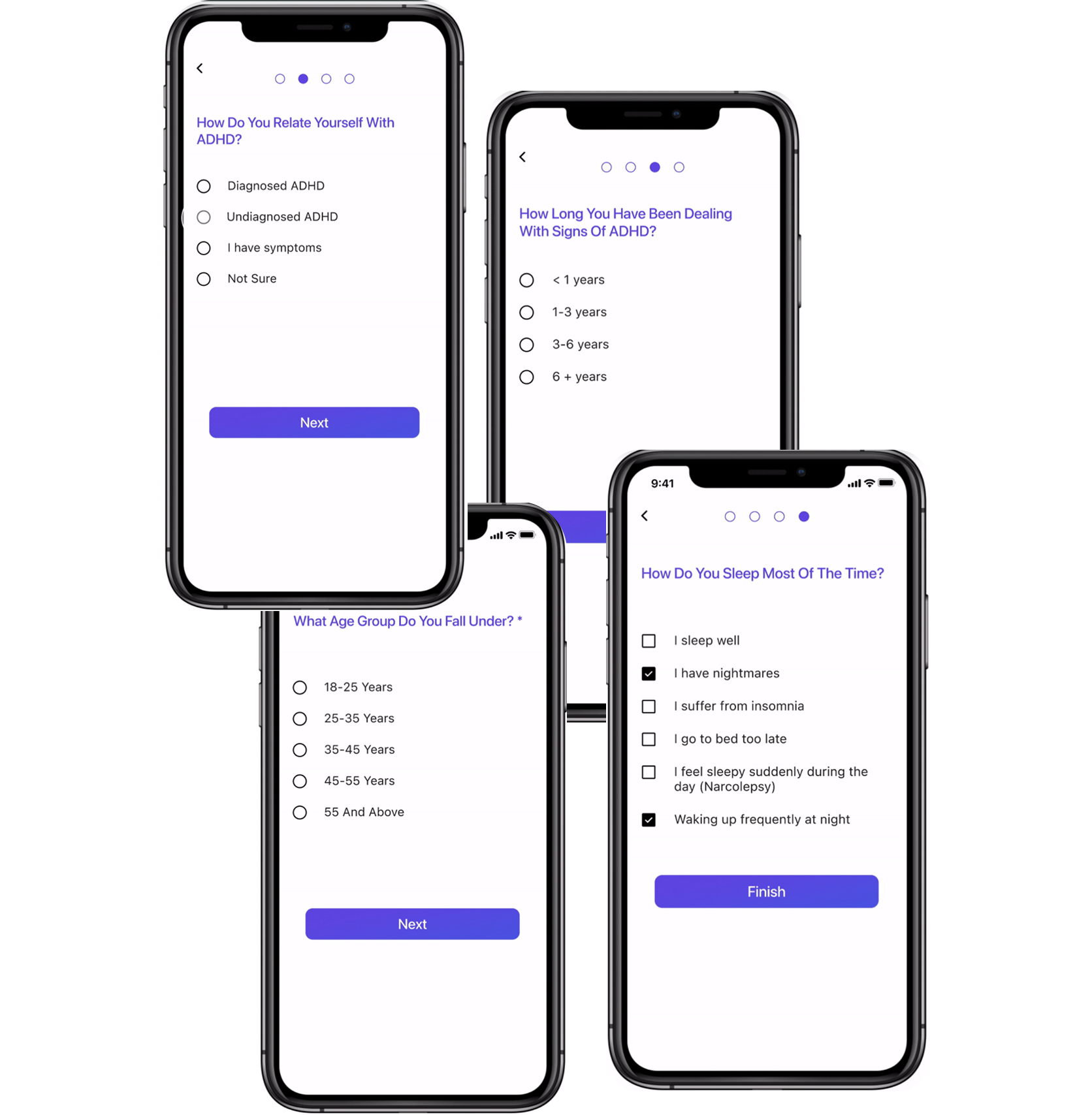 Designed an onboarding flow that explains ADHD traits in positive, relatable language.